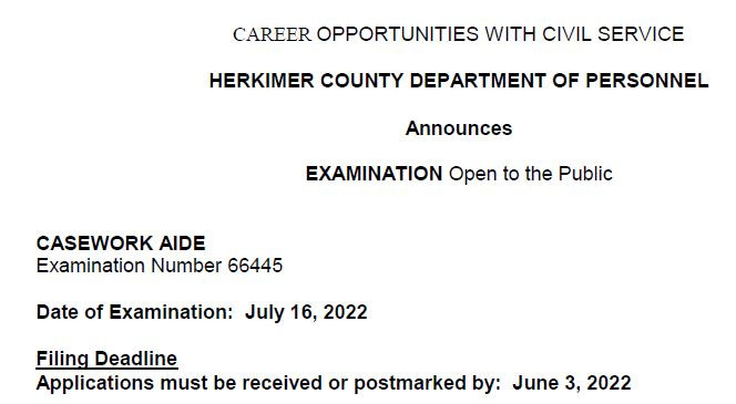 EXAMINATION Open to the Public: CASEWORK AIDE