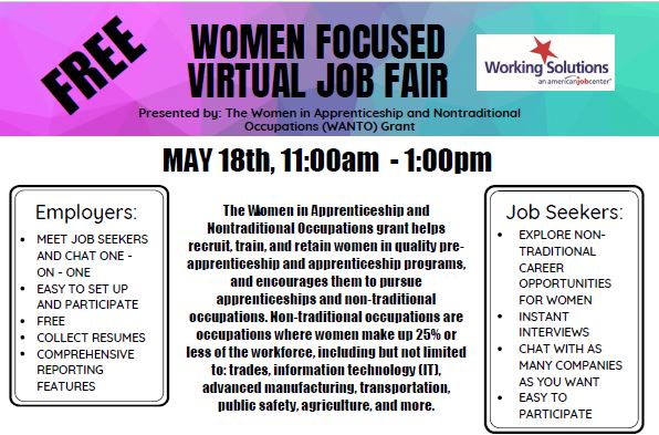 This program is 100% funded by a United States Department of Labor grant administered by the Women’s Bureau and Employment and Training Administration of $716,676.00.